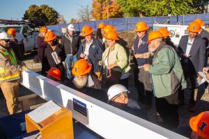 On Monday, Oct. 20, 2025, campus and Extension leaders, advocates, and members of the project team gathered for a symbolic beam signing event to celebrate the ongoing progress of the Doris Kelley Christopher Illinois Extension Center, which was first announced in Fall 2021.