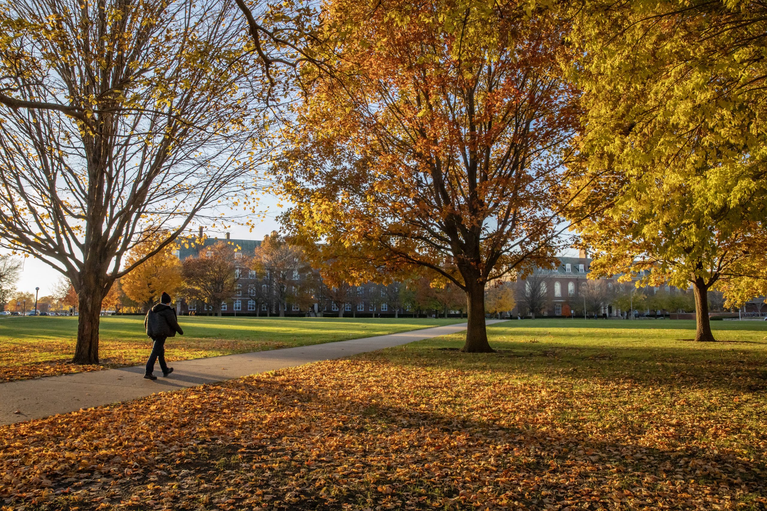 Leaves in open lawn areas are mulched when mowing up until the point they accumulate beyond the capacity of the mowers. They are then vacuumed by our leaf vacuum equipment and hauled to an on-campus compost site.